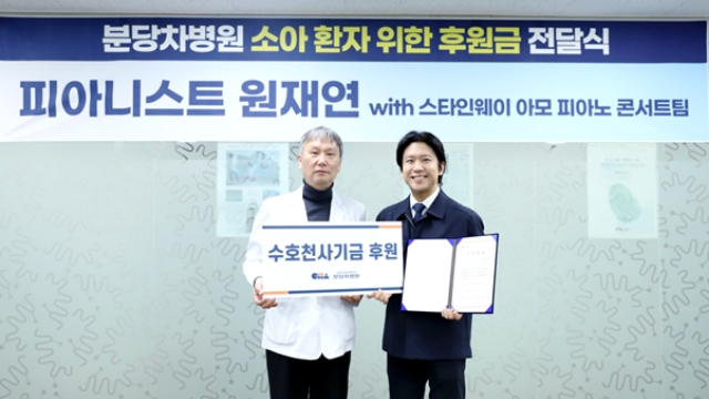 피아니스트 원재연이 지난해 12월 개최된 ‘스타인웨이 아모 피아니스트 콘서트 시리즈 II’의 티켓 수익금과 개인 후원금을 더해, 분당차병원 소아 환자의 치료비 지원을 위해 500만 원을 기부했습니다. 윤상욱 분당차병원장은 원 씨의 뜻에 공감하며 동일한 금액을 추가로 후원, 총 1,000만 원의 후원금이 마련됐는데요. 각자의 자리에서 사회적 책임을 실천하는 예술인과 의료인의 만남은 깊은 울림을 줬습니다.