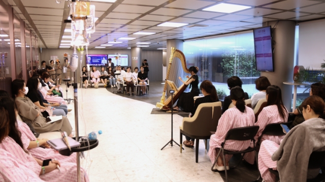 지난 9월 18일(목) 강남차병원 본원 지하1층 로비에서는 ‘가을맞이 작은 음악회’가 펼쳐졌습니다.병원에 입원 중인 유방암, 부인암 등 여성 환자들과 내원 고객들을 위해 정서적 안정감을 도모하고자 기획된 이번 연주회는 사단법인 세이브월드와 함께 한국예술종합학교에서 하프를 전공 중인 학생의 재능기부로 진행되었는데요. 환자들은 잠시나마 심리적 위안이 되는 시간이었다고 입을 모았습니다. 한편, 강남차병원의 작은 음악회는 누구나 재능기부를 통해 참여할 수 있습니다. 문의: 강남차병원 사회사업실(02-3468-3226)